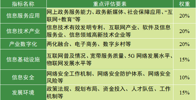 為更好地評(píng)估各地區(qū)信息化發(fā)展情況,國(guó)家網(wǎng)信辦組織有關(guān)單位,結(jié)合國(guó)家統(tǒng)計(jì)局、工業(yè)和信息化部、中央黨校(國(guó)家行政學(xué)院)、人力資源社會(huì)保障部、中國(guó)互聯(lián)網(wǎng)絡(luò)信息中心(CNNIC)等部門和機(jī)構(gòu)的統(tǒng)計(jì)數(shù)據(jù)和評(píng)價(jià)指數(shù),開展了2020年各地區(qū)信息化發(fā)展評(píng)估工作,重點(diǎn)評(píng)估了31個(gè)?。▍^(qū)、市)信息服務(wù)應(yīng)用、信息技術(shù)產(chǎn)業(yè)、產(chǎn)業(yè)數(shù)字化、信息基礎(chǔ)設(shè)施、信息安全、發(fā)展環(huán)境等方面的發(fā)展水平,評(píng)價(jià)指標(biāo)如表1所示。