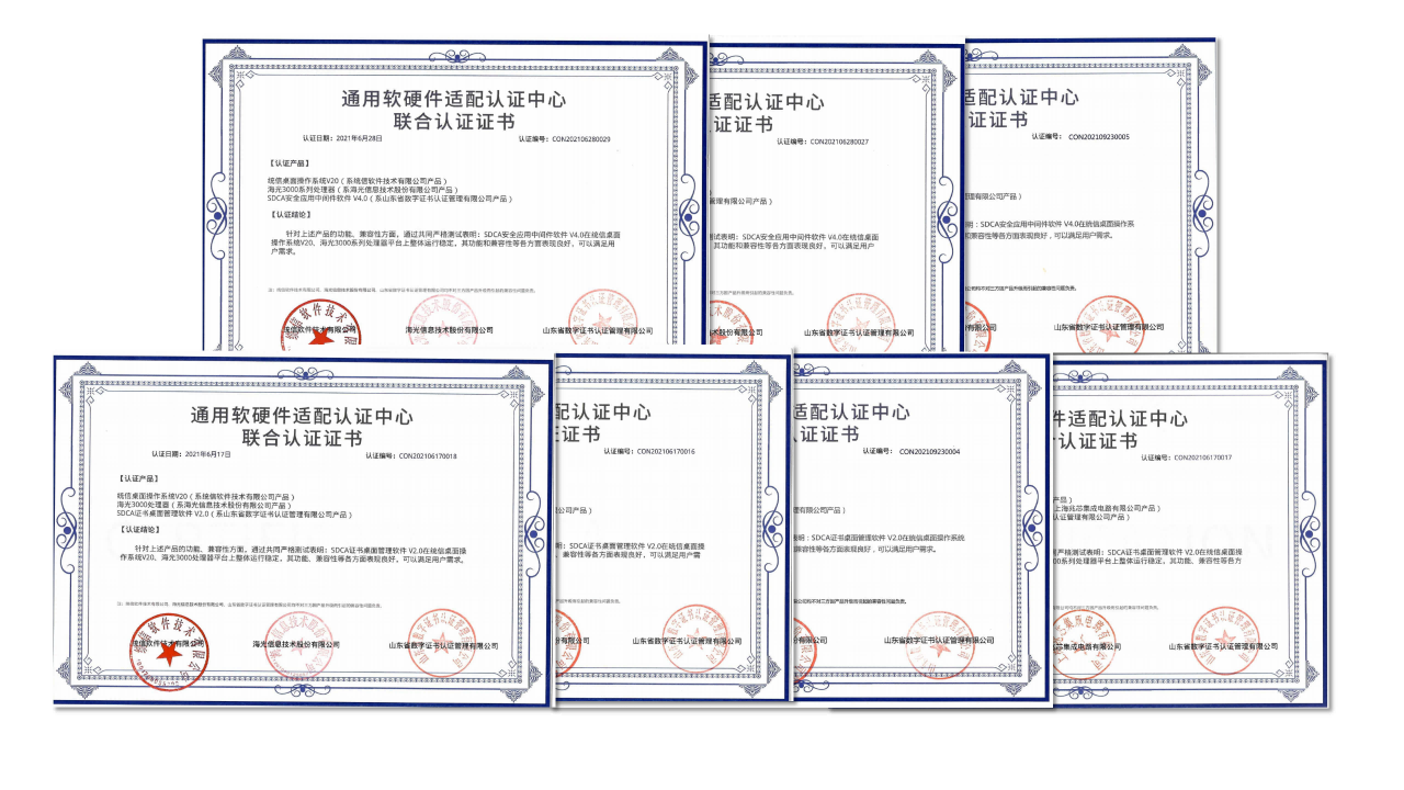 近日,經(jīng)過多次的嚴格聯(lián)合測試后,山東CA旗下的SDCA安全應(yīng)用中間件系列、SDCA桌面管理軟件系列分別獲得麒麟軟件在飛騰、鯤鵬、龍芯、兆芯、海光等5個國產(chǎn)處理器平臺上的NeoCertify認證,并與統(tǒng)信桌面操作系統(tǒng)V20在飛騰、鯤鵬、龍芯、兆芯、海光、海思等6個國產(chǎn)芯片廠商9款處理器平臺上完成了通用軟硬件適配認證。測試表明,山東CA上述產(chǎn)品與銀河麒麟及中標麒麟桌面操作系統(tǒng)、統(tǒng)信桌面操作系統(tǒng)V20在主流國產(chǎn)處理器平臺上運行穩(wěn)定,能夠達到通用兼容性要求及性能、可靠性要求,滿足用戶的關(guān)鍵性應(yīng)用需求。