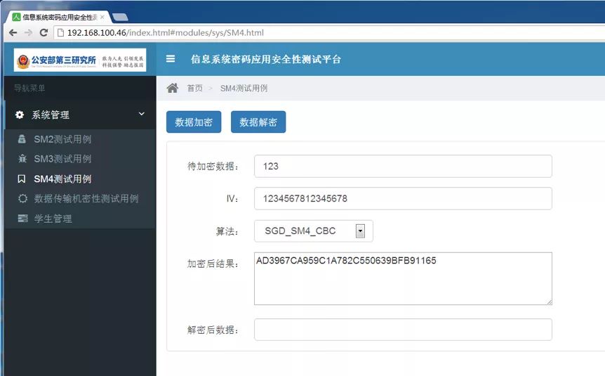 在示例中,待加密的明文數(shù)據(jù)為:123。