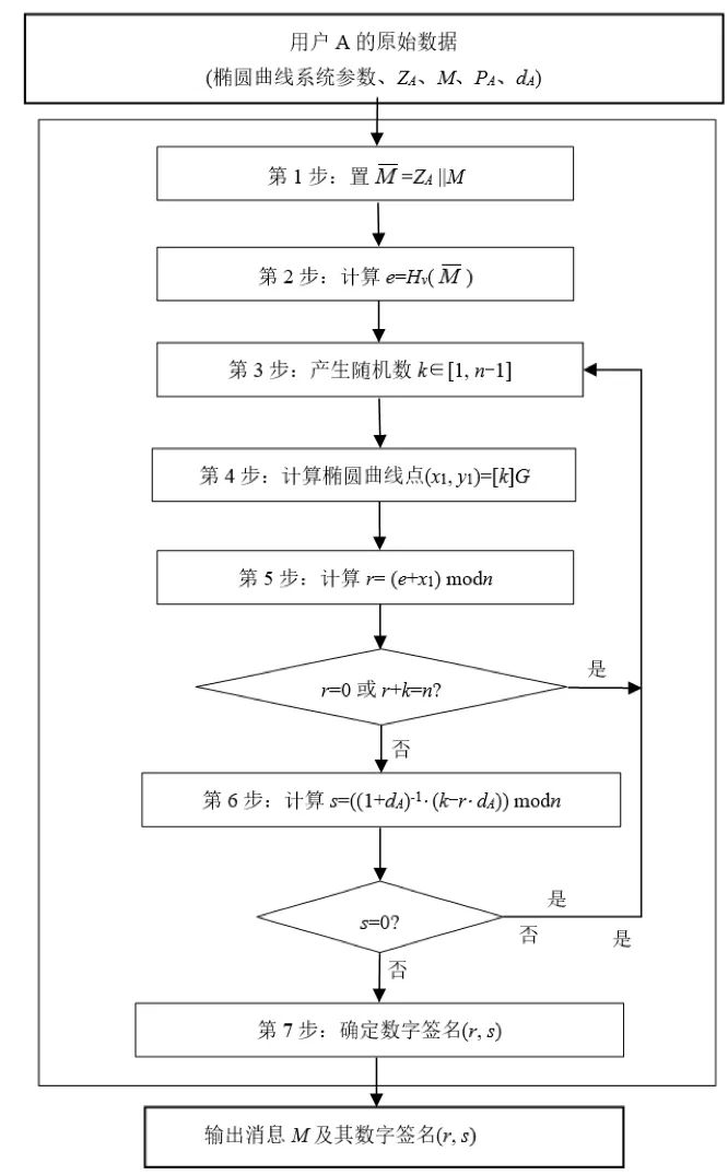 設(shè)待簽名的消息為,為了獲取消息M的數(shù)字簽名,簽名方A應(yīng)實(shí)現(xiàn)以下運(yùn)算步驟(圖8):
