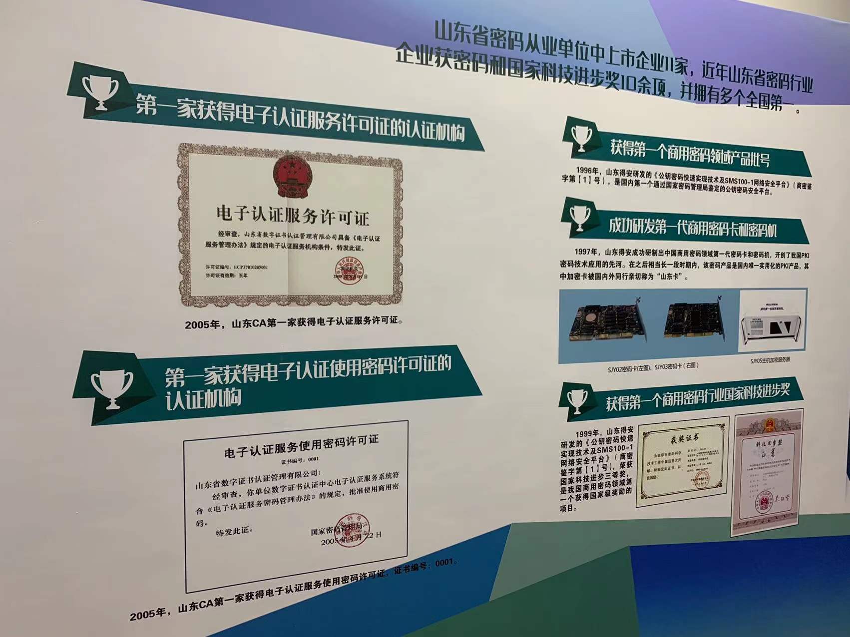 值得一提的是,山東CA有多項(xiàng)內(nèi)容入選“商用密碼創(chuàng)新與成果”版塊多個(gè)展區(qū)。在“山東開創(chuàng)全國第一”展區(qū),山東CA于2005年取得的全國第一張“電子認(rèn)證服務(wù)許可證”和“電子認(rèn)證服務(wù)使用密碼許可證”赫然在目;“國密SIM卡型硬件盾(SIM Key)”以其先進(jìn)性、安全性、便利性和重要的推廣價(jià)值,成功入選“商密創(chuàng)新產(chǎn)品”實(shí)物展區(qū);山東CA“國家級(jí)政務(wù)云密碼應(yīng)用試點(diǎn)”和“電子報(bào)到證”分別作為政務(wù)和教育領(lǐng)域成功實(shí)施并取得重要經(jīng)濟(jì)效益和社會(huì)效益的典型應(yīng)用,入選“案例展示”展區(qū)。