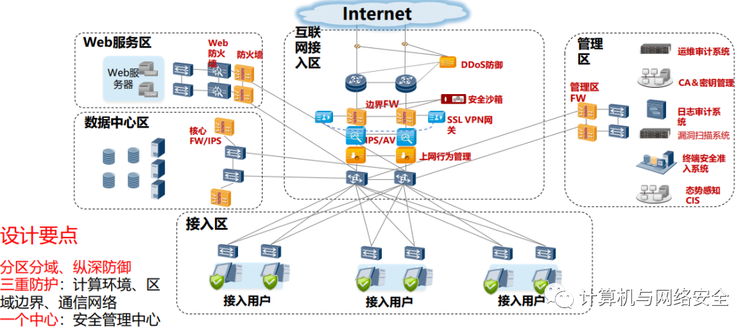 4.完備性原則:按照物理環(huán)境安全、通信網(wǎng)絡(luò)安全、網(wǎng)絡(luò)邊界安全、計(jì)算環(huán)境安全、應(yīng)用數(shù)據(jù)安全及密鑰管理和安全管理;