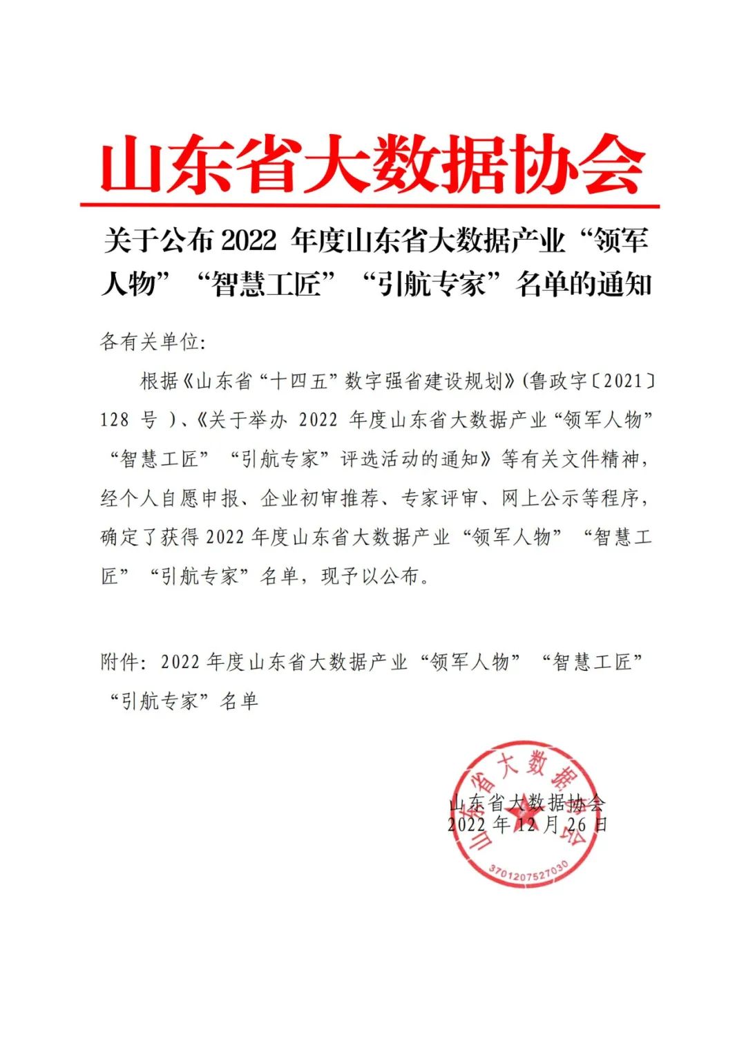 根據(jù)《山東省“十四五”數(shù)字強(qiáng)省建設(shè)規(guī)劃》(魯政字〔2021〕128號(hào))、《關(guān)于舉辦2022年度山東省大數(shù)據(jù)產(chǎn)業(yè)“領(lǐng)軍人物”“智慧工匠”“引航專家”評(píng)選活動(dòng)的通知》,經(jīng)過(guò)初審?fù)扑]、專家評(píng)審、網(wǎng)上公示,12月26日,山東省大數(shù)據(jù)協(xié)會(huì)正式公布了2022年度山東省大數(shù)據(jù)產(chǎn)業(yè)“領(lǐng)軍人物”入選名單,山東CA總經(jīng)理王銳成功當(dāng)選,被評(píng)為2022年度山東省大數(shù)據(jù)產(chǎn)業(yè)“領(lǐng)軍人物”。