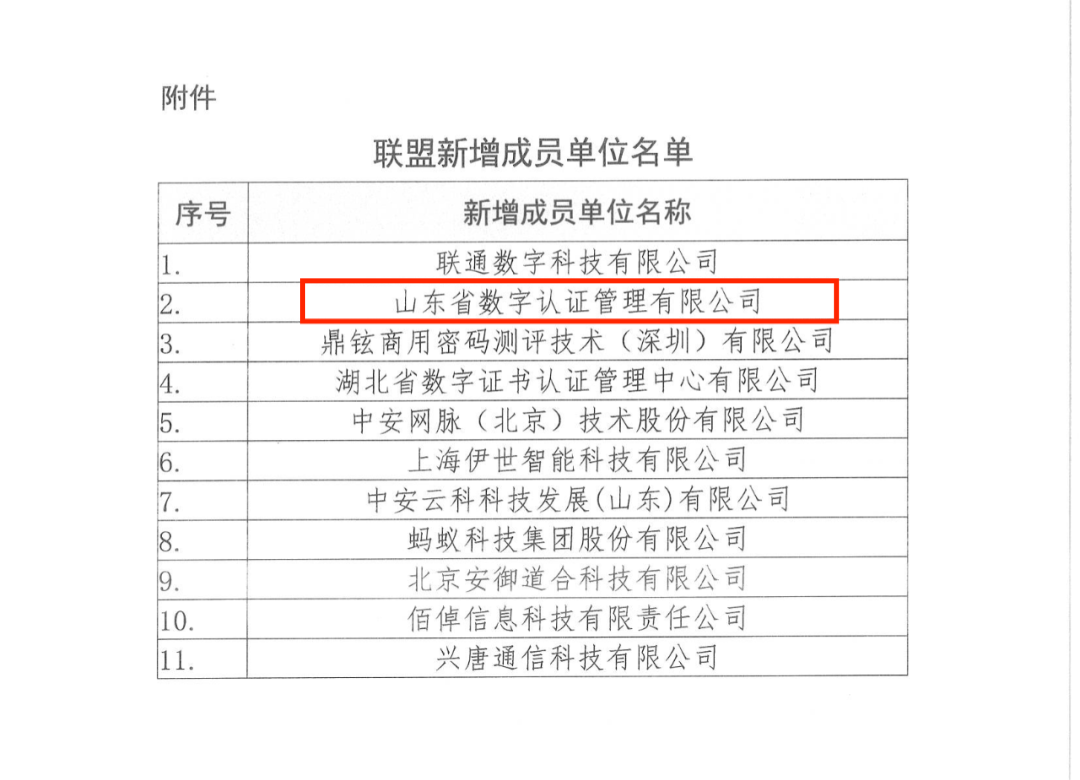 山東CA正式加入工信部商用密碼應(yīng)用產(chǎn)業(yè)促進聯(lián)盟